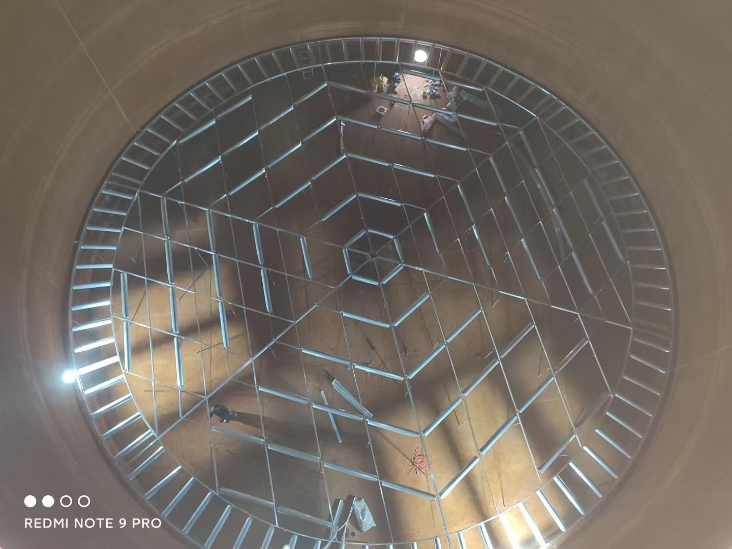 6、內(nèi)浮盤組裝所需的電源電線已接至罐口并準備好焊機等必備條件,組裝過程中需使用手電鉆、電動扳手等工具,業(yè)主方需按相關(guān)章程辦理動火證;