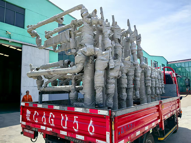 山東青島客戶定制采購(gòu)的一批裝車(chē)鶴管已通過(guò)物流發(fā)往使用現(xiàn)場(chǎng)